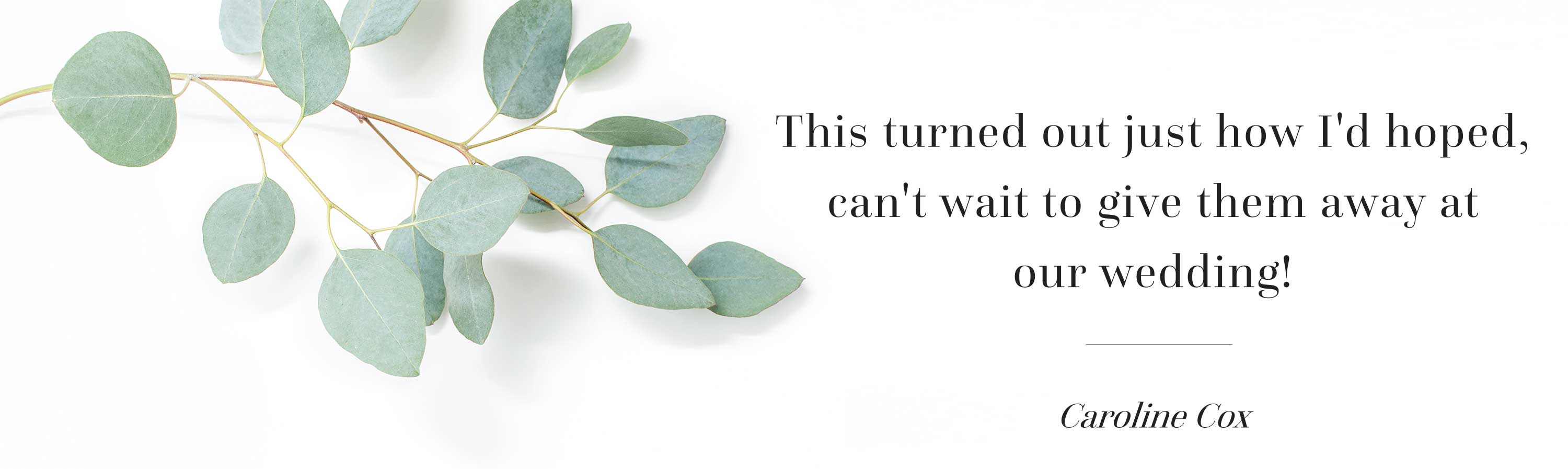 "These were the perfect favor for my guests. Everything turned out wonderful, just the way we had been discussing. I am one very pleased bride!"
