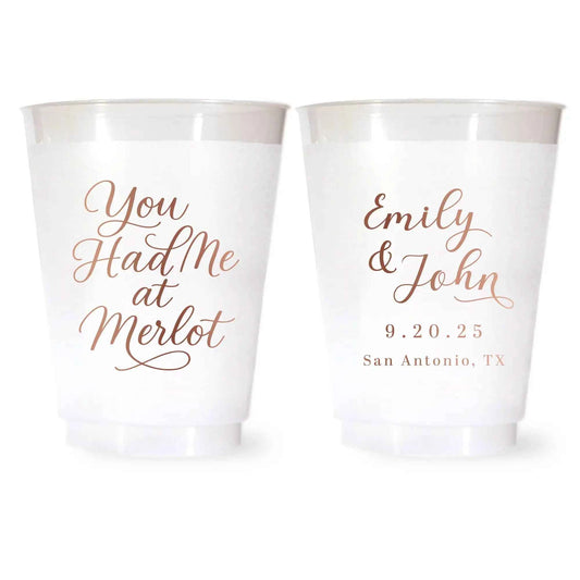 You Had Me at Merlot Wedding Cups 16 oz Frosted Personalized Clear Plastic Cups Wedding Custom for Bridal Shower Favors
