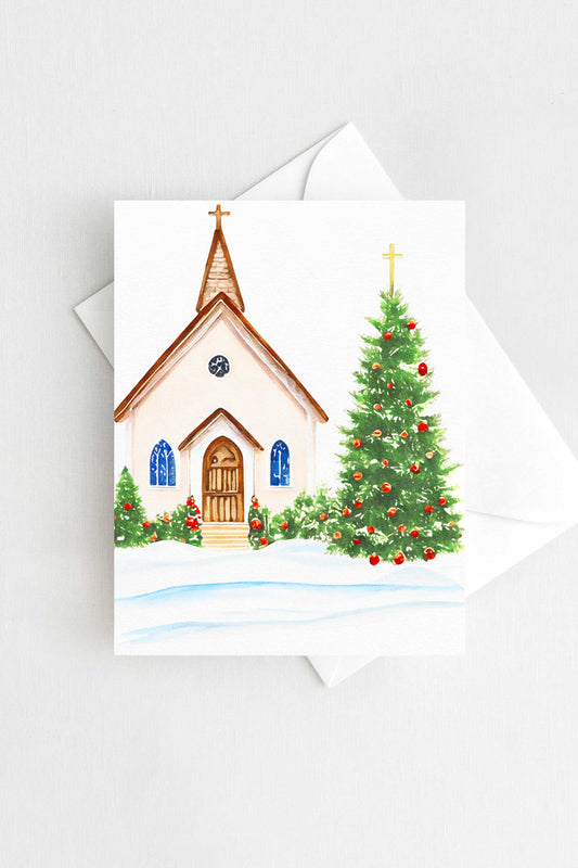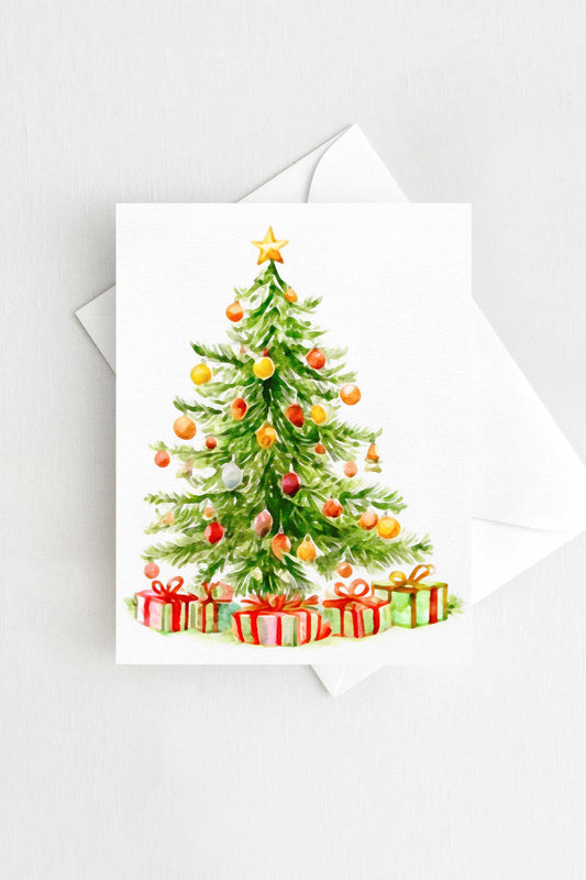 Christmas Tree and Wood Stack Holiday Card Watercolor H034