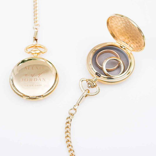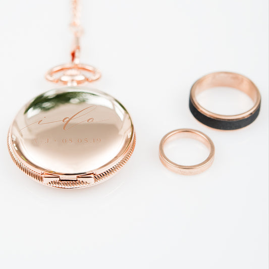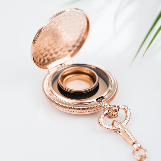 Rose Gold Wedding Ring Box - Pocket Case with Chain