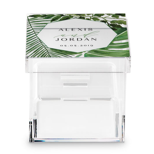 Lucite Wedding Ring Box - Watercolor Green Fern