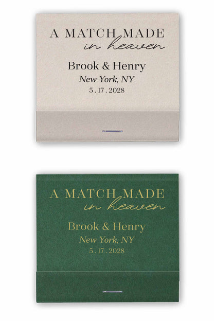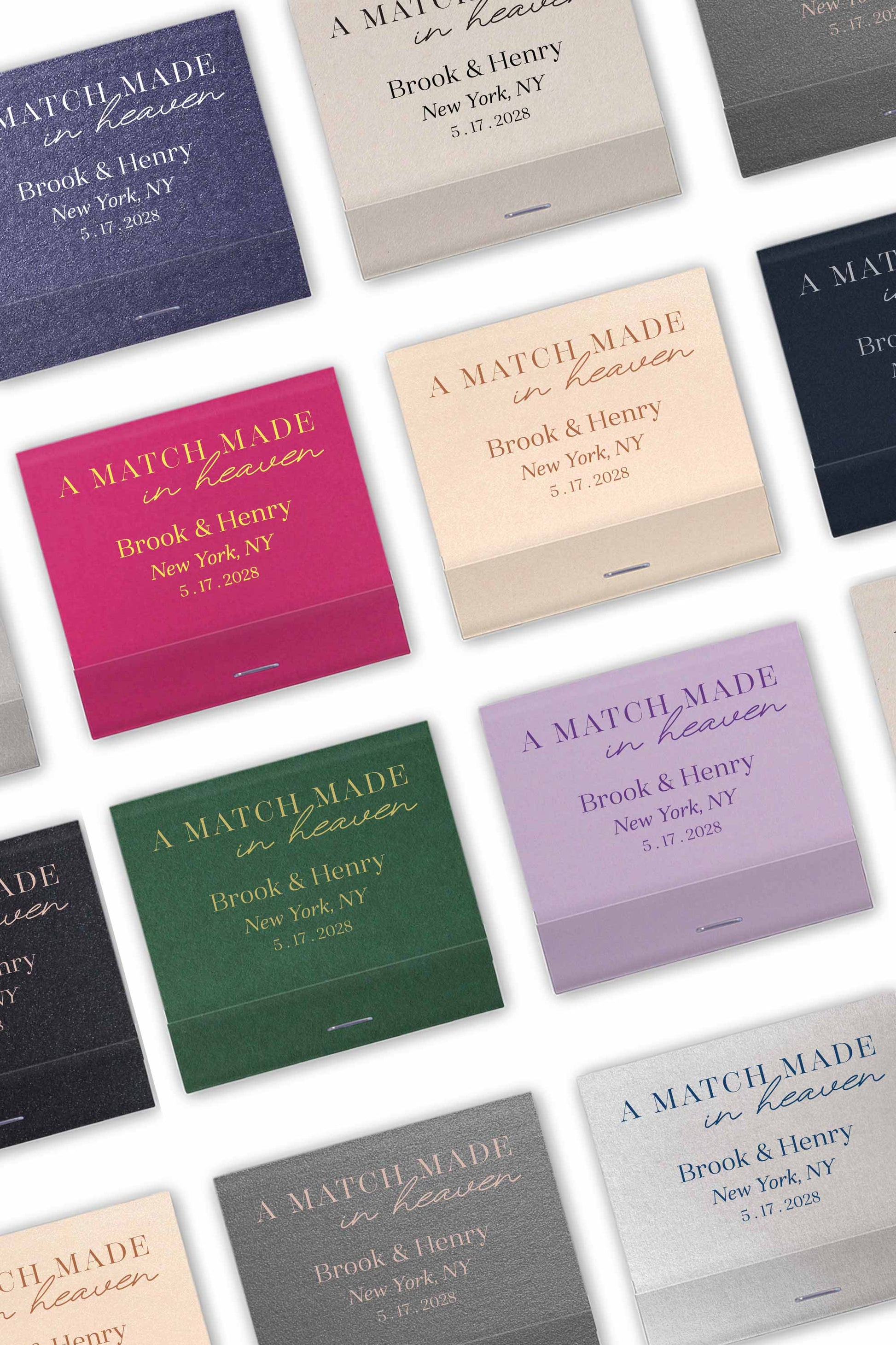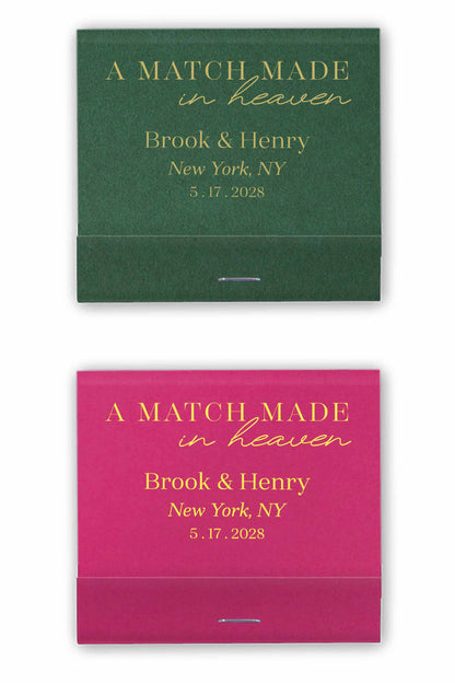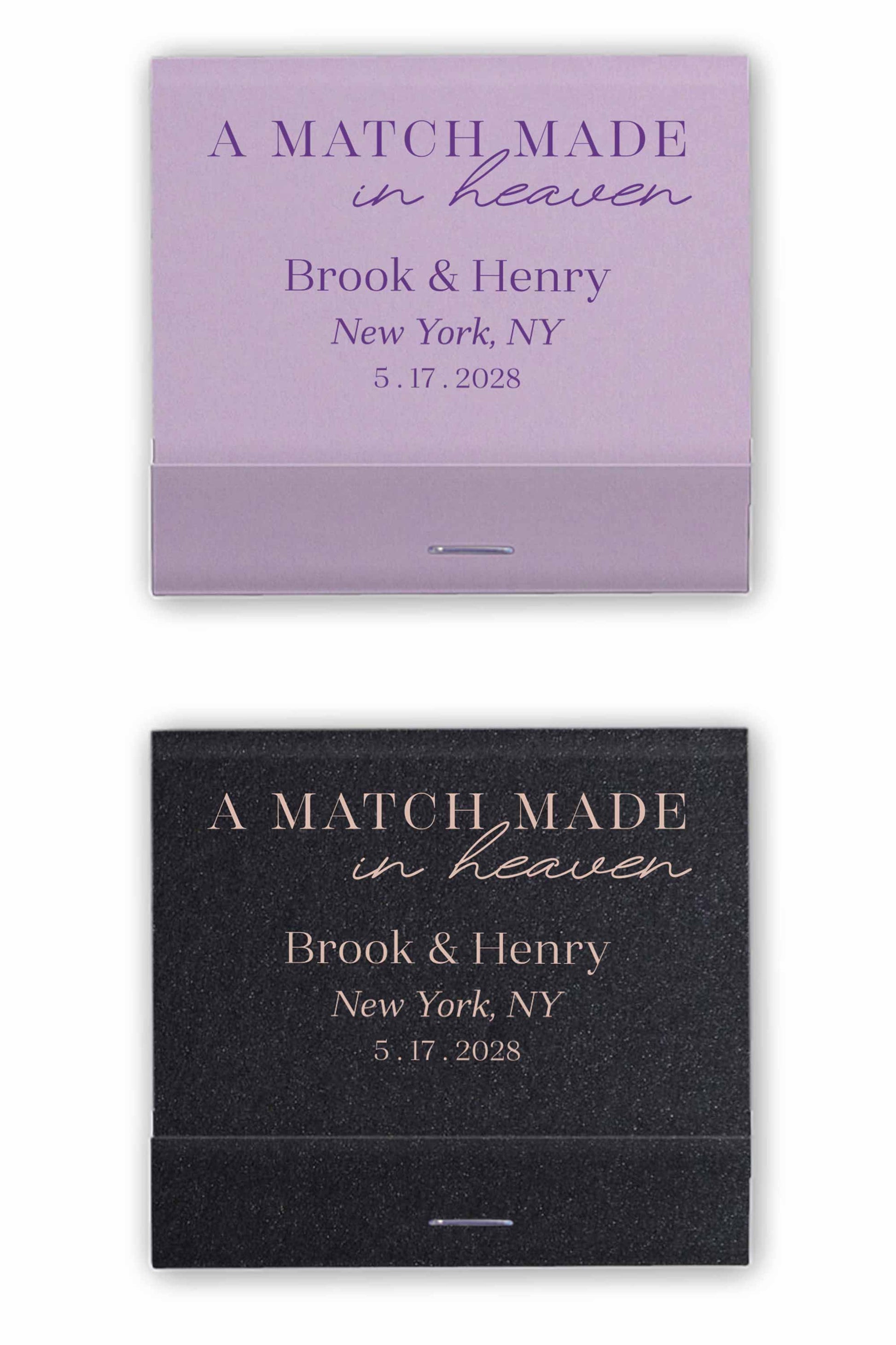 Are you searching for the perfect wedding favor to light up your special day? Look no further than our enchanting "A Match Made in Heaven" wedding matchbook! Crafted with love and designed to add a touch of magic to your celebration, these matchbooks are the ideal keepsake for your guests.