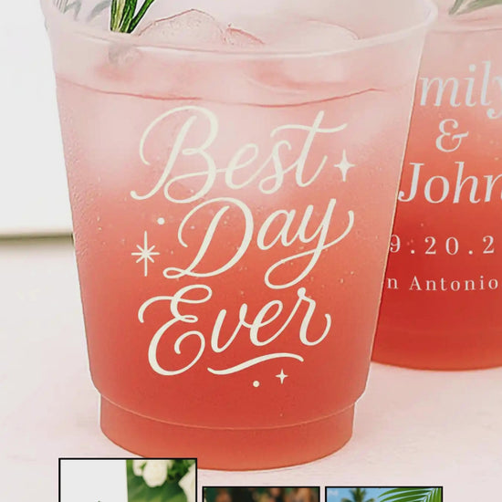 Celebrate your Best Day Ever with these custom frosted wedding cups—designed to add sparkle to your big day! Whether you're planning a wedding reception, bridal shower, engagement party, or destination event, these cups are the perfect personalized touch for any celebration.