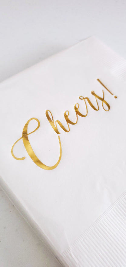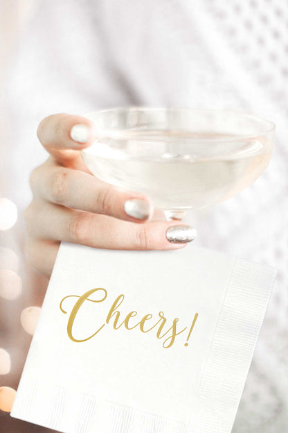 Cheers Napkins White and Gold - Wholesale