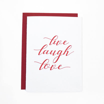 When your love is not only a feeling, it’s a statement, tell your loved ones with our Live Laugh Love Letterpress Greeting Card.
