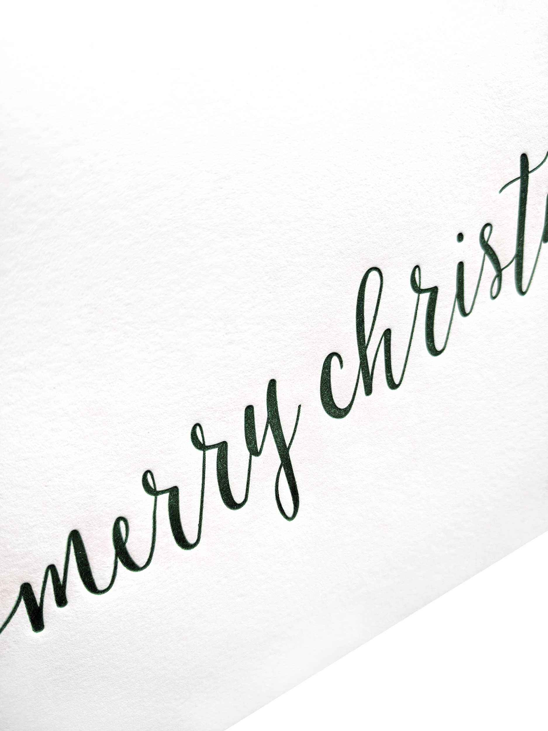 Make the holiday season even sweeter with a beautiful letterpress Merry Christmas card. The card is letterpress printed by hand with green ink on white cotton paper paired with an ruby red envelope. Your friends and family will love your simply elegant Christmas cards. The cards will make the perfect keepsake.