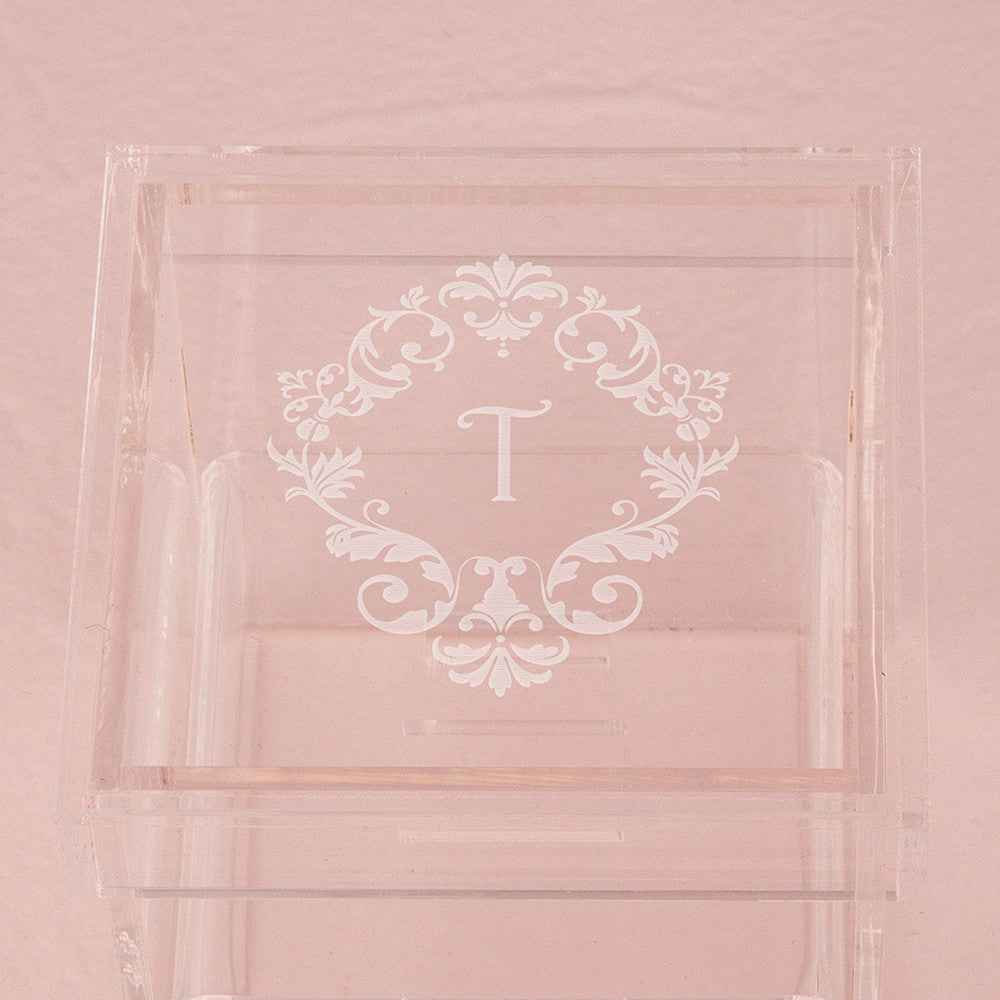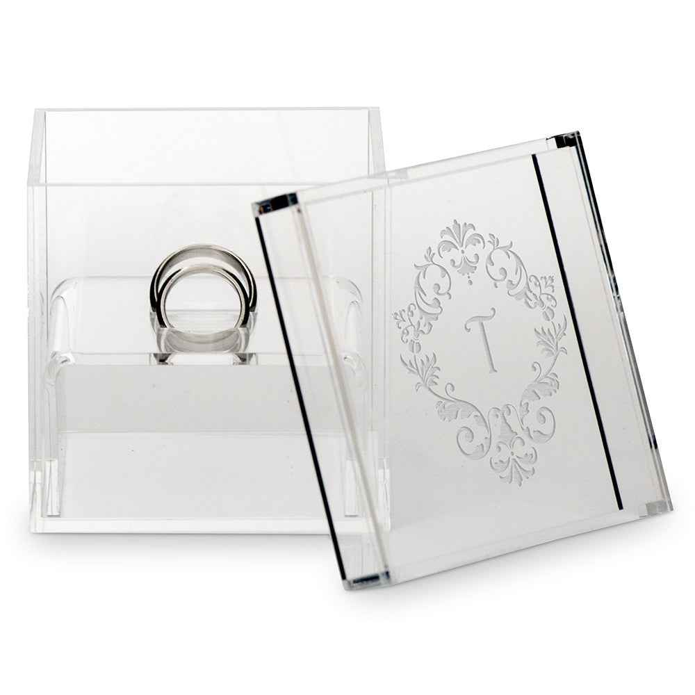 Monogrammed Filigree Personalized Lucite Wedding Ring Box