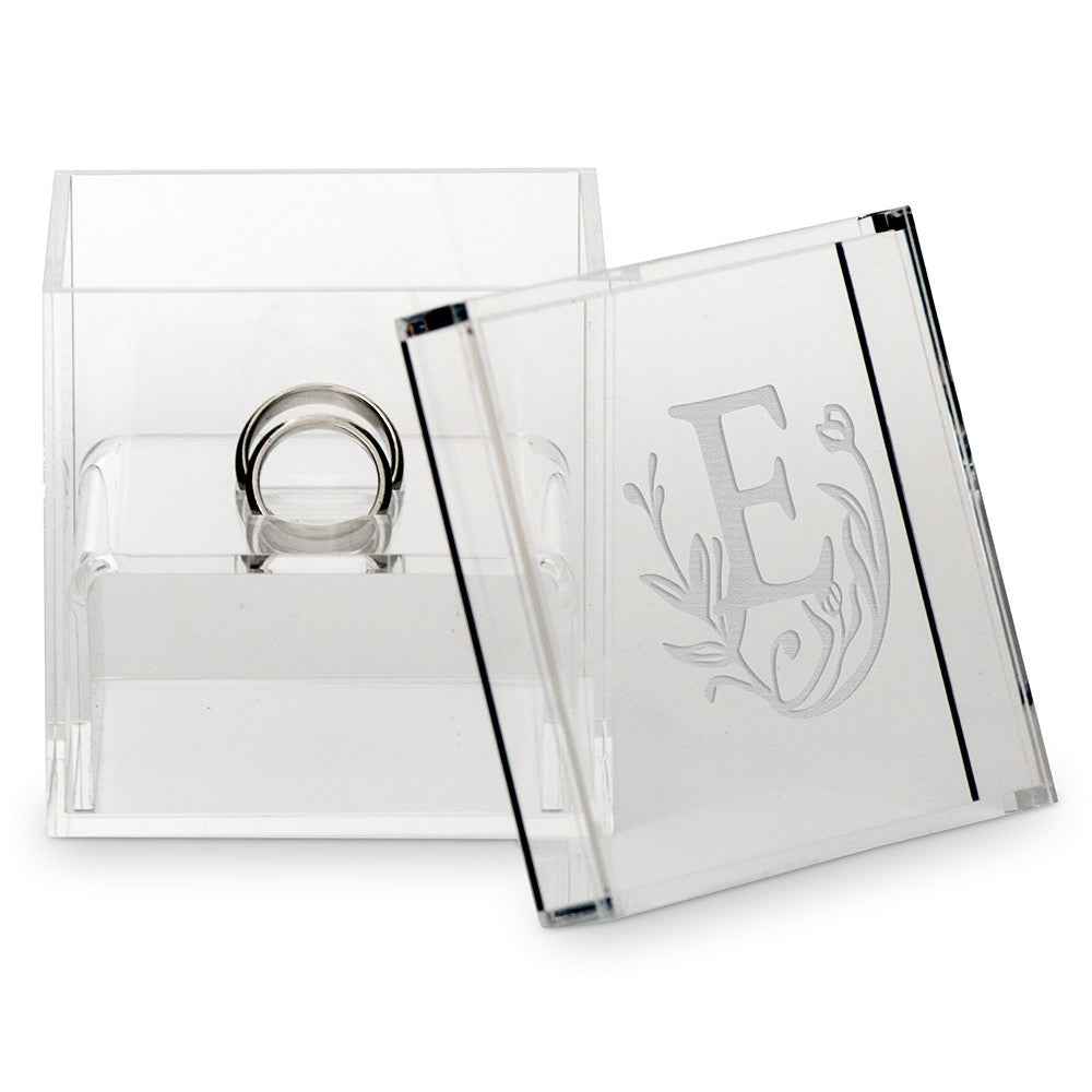 Monogrammed Floral Personalized Lucite Wedding Ring Box
