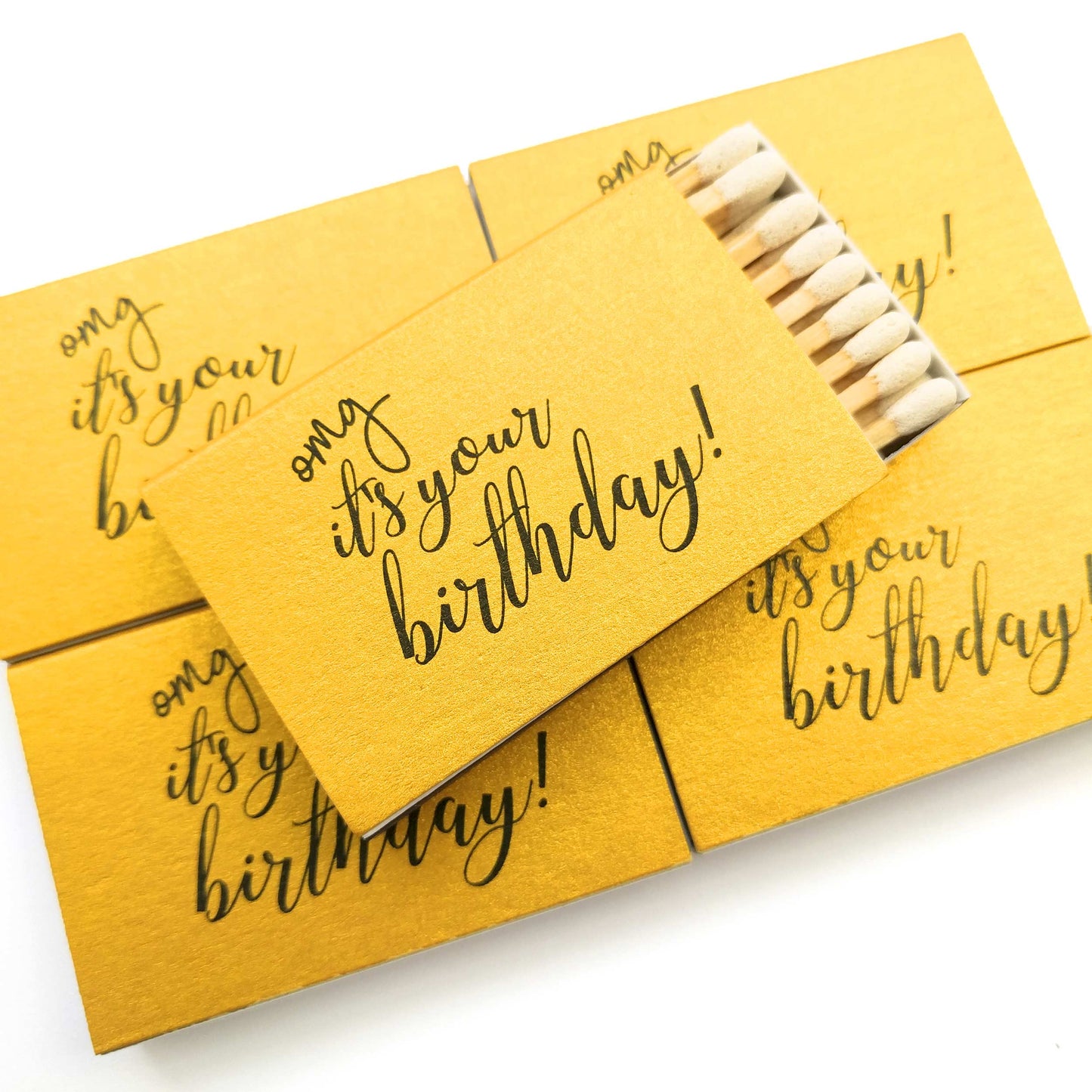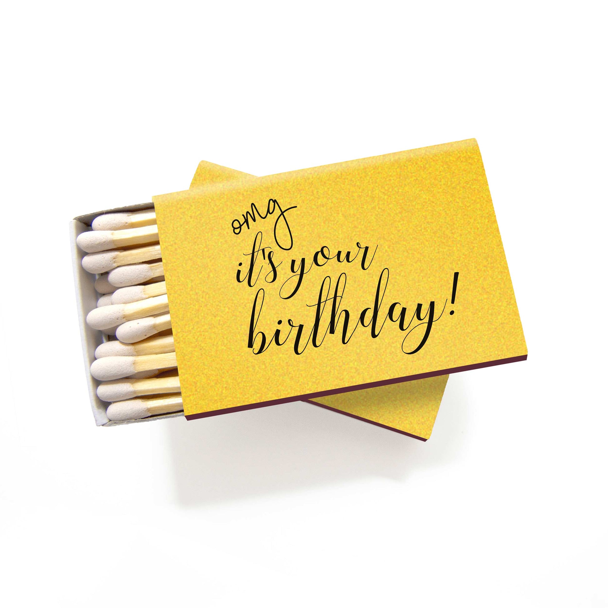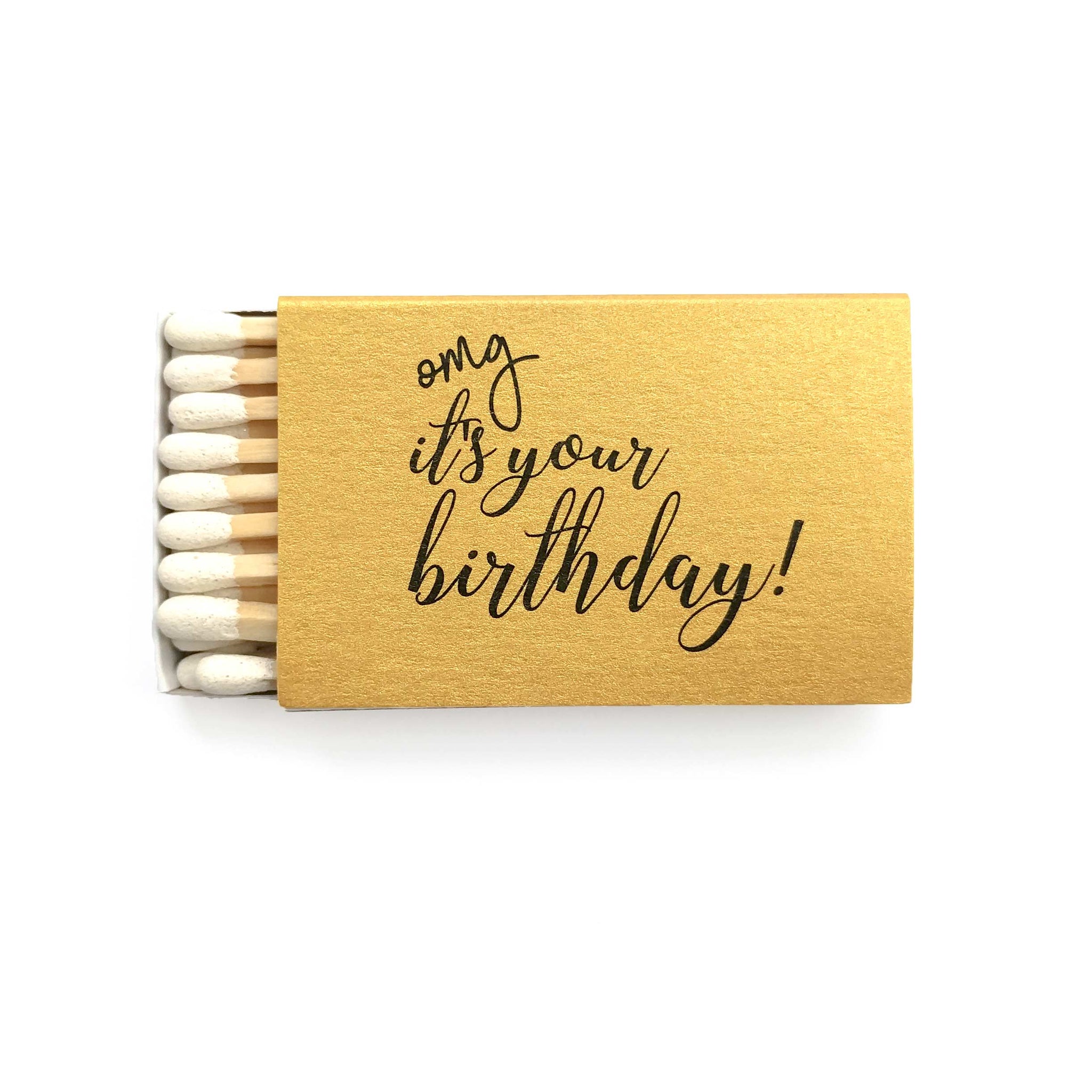 Get those candles lit with fun OMG It's Your Birthday Matchboxes! These matchboxes are beautifully foil stamped with the phrase OMG, It's Your Birthday,on both sides. Paired with birthday candles, these matchboxes make a fun birthday gift.
