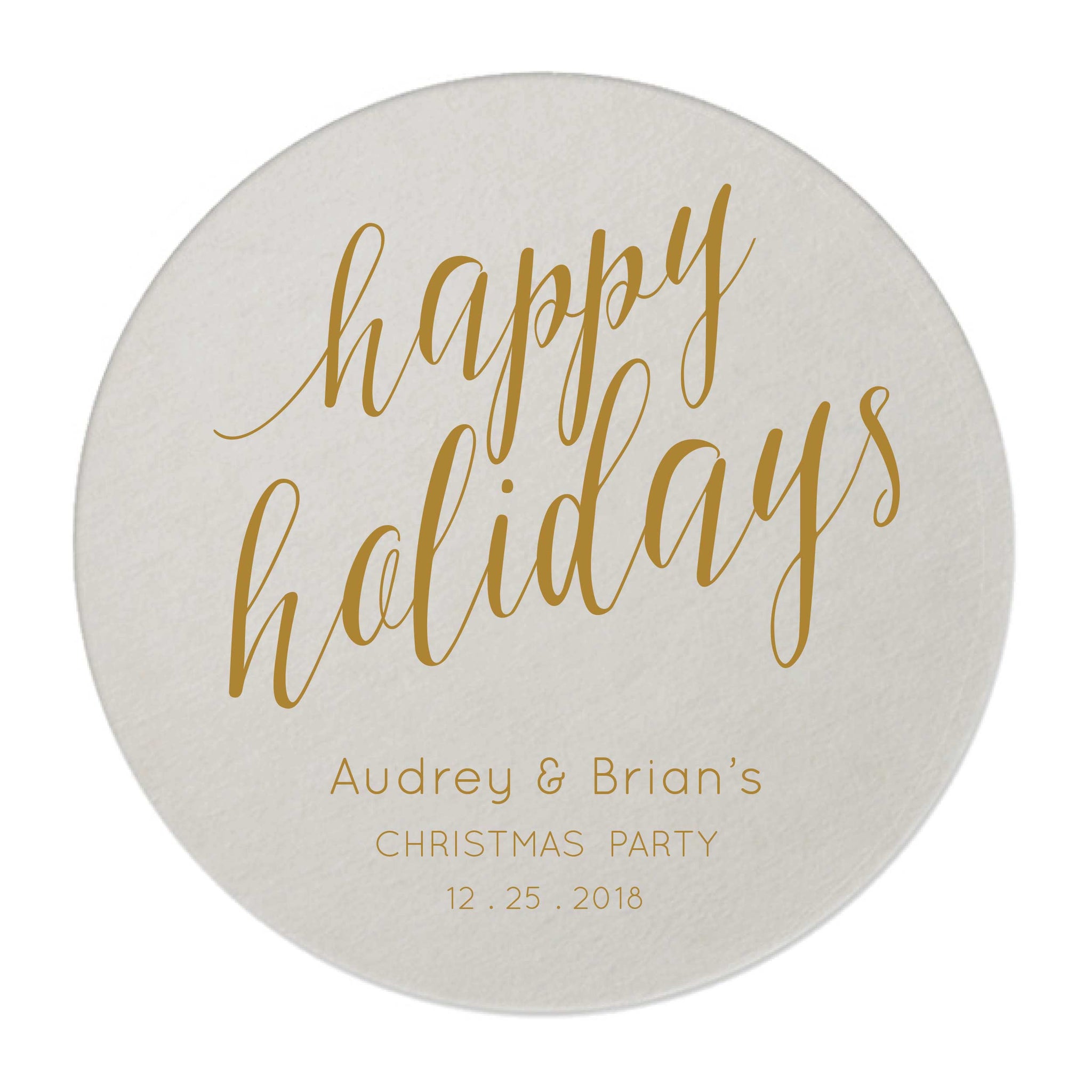 Add a personalized touch to your holiday party this year with our Personalized Happy Holiday Coasters! Our beautifully foil letterpressed coasters are personalized with your names and even the party date.