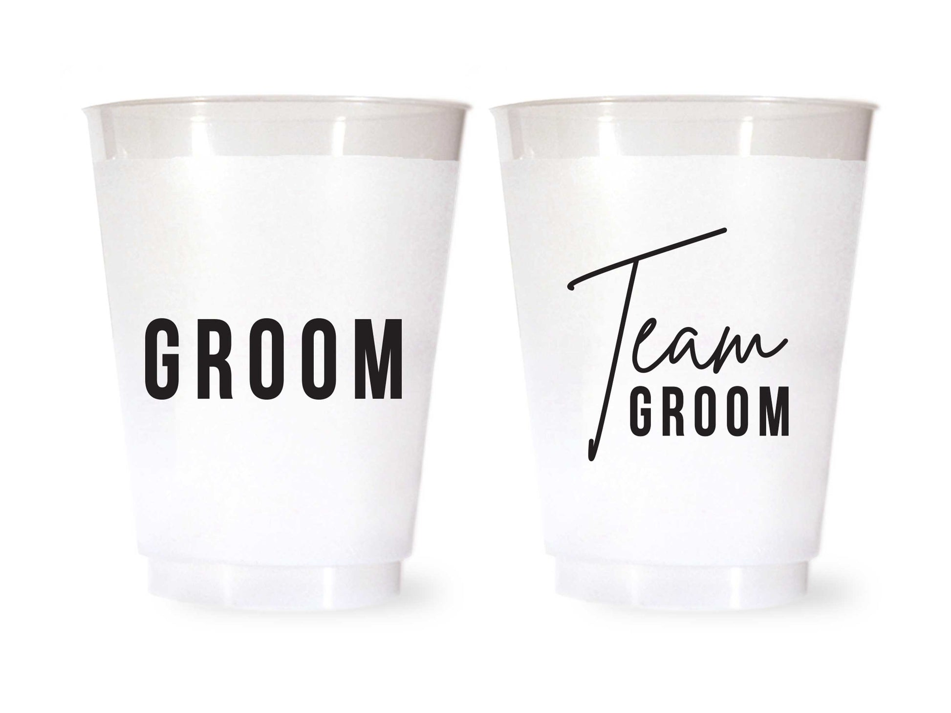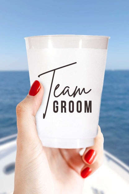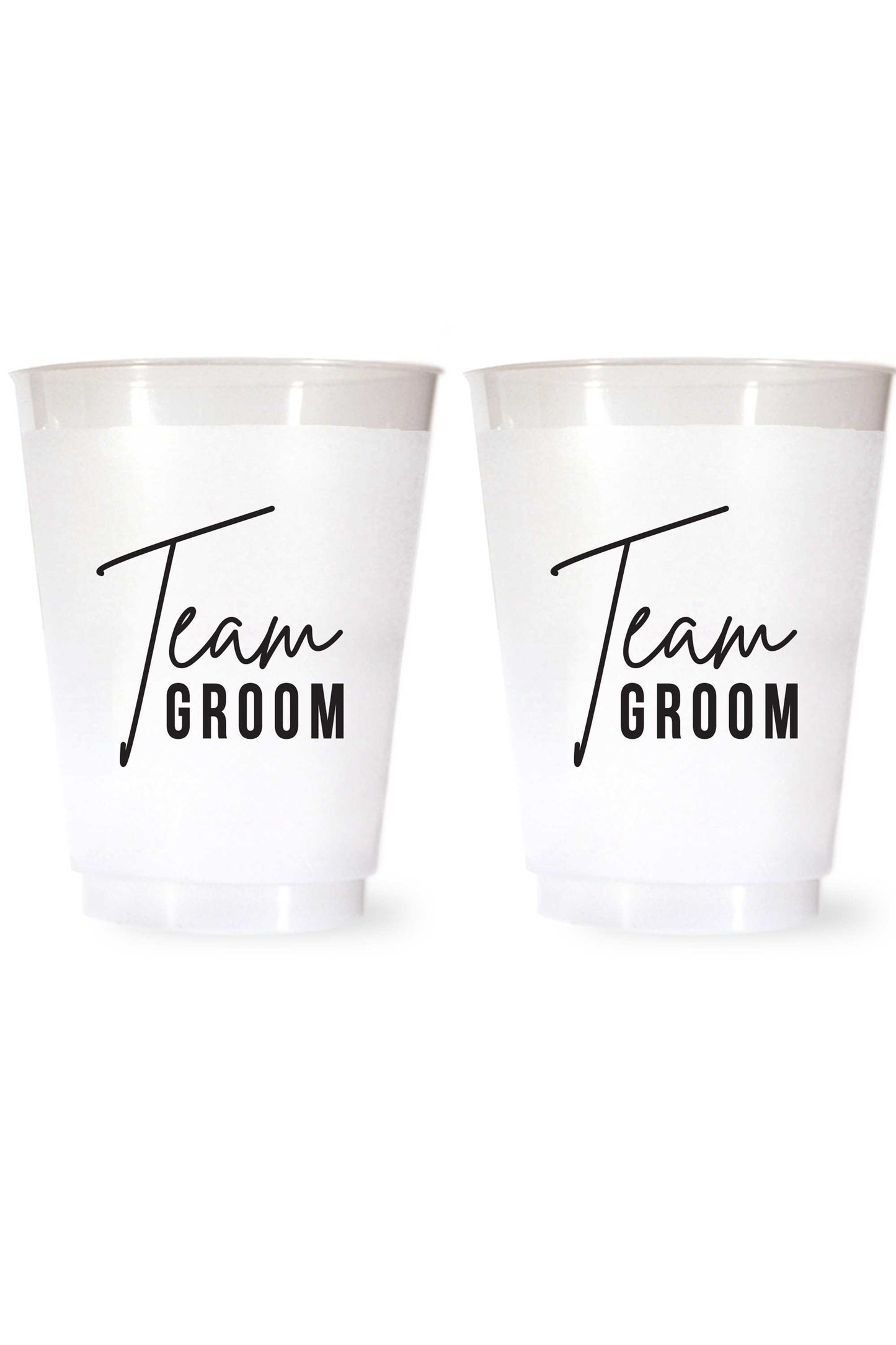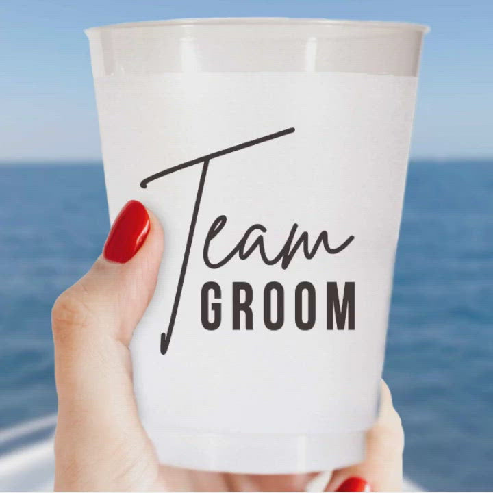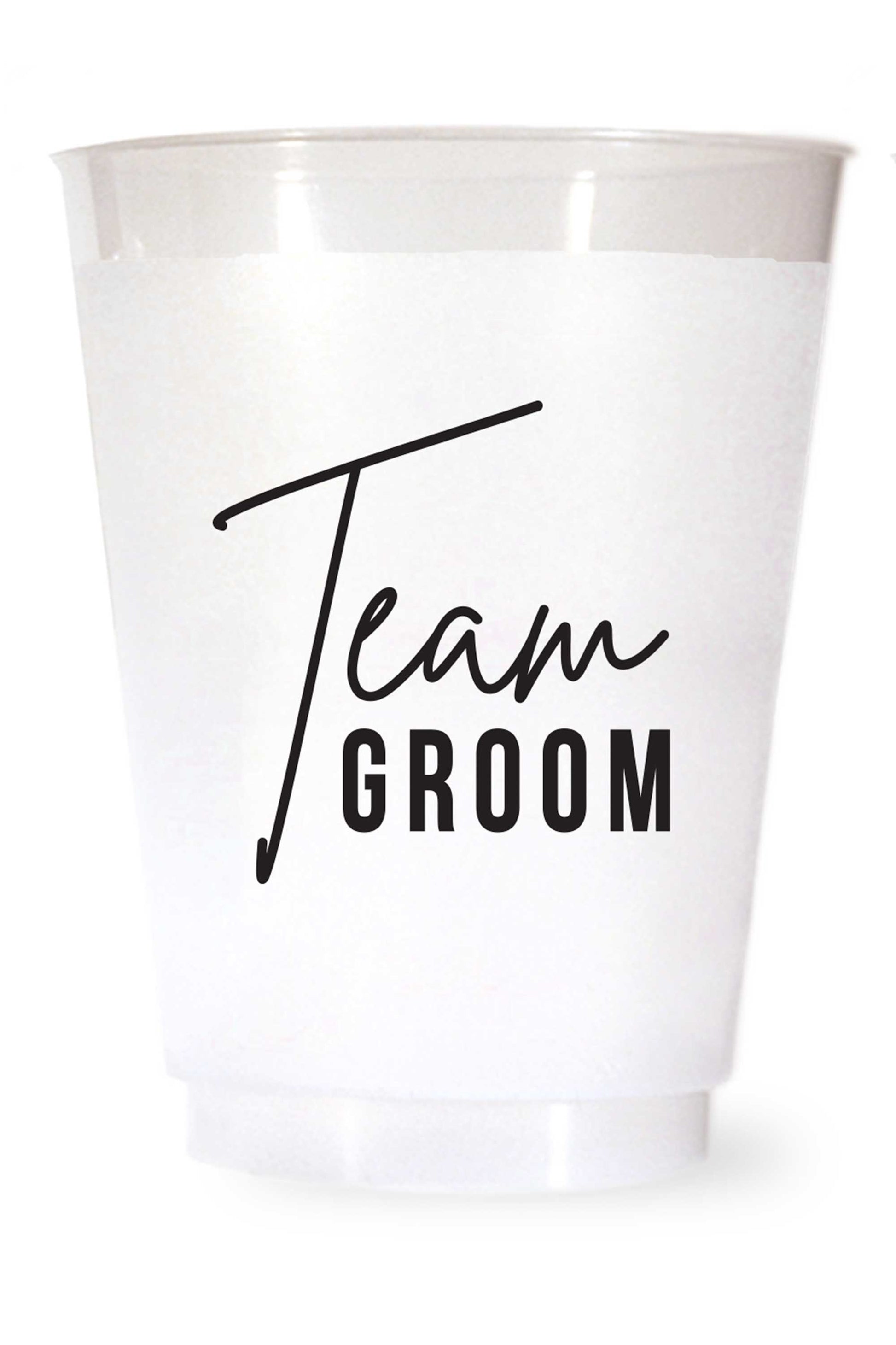 Perfect for bachelor parties. Our Team Groom cups are the perfect size for beer, wine, soda and water. Packed in a cello sleeve and wrapped with a ribbon, perfect for gifting. Pair on your shelves with the Team Bride cups for the perfect gift giving set!