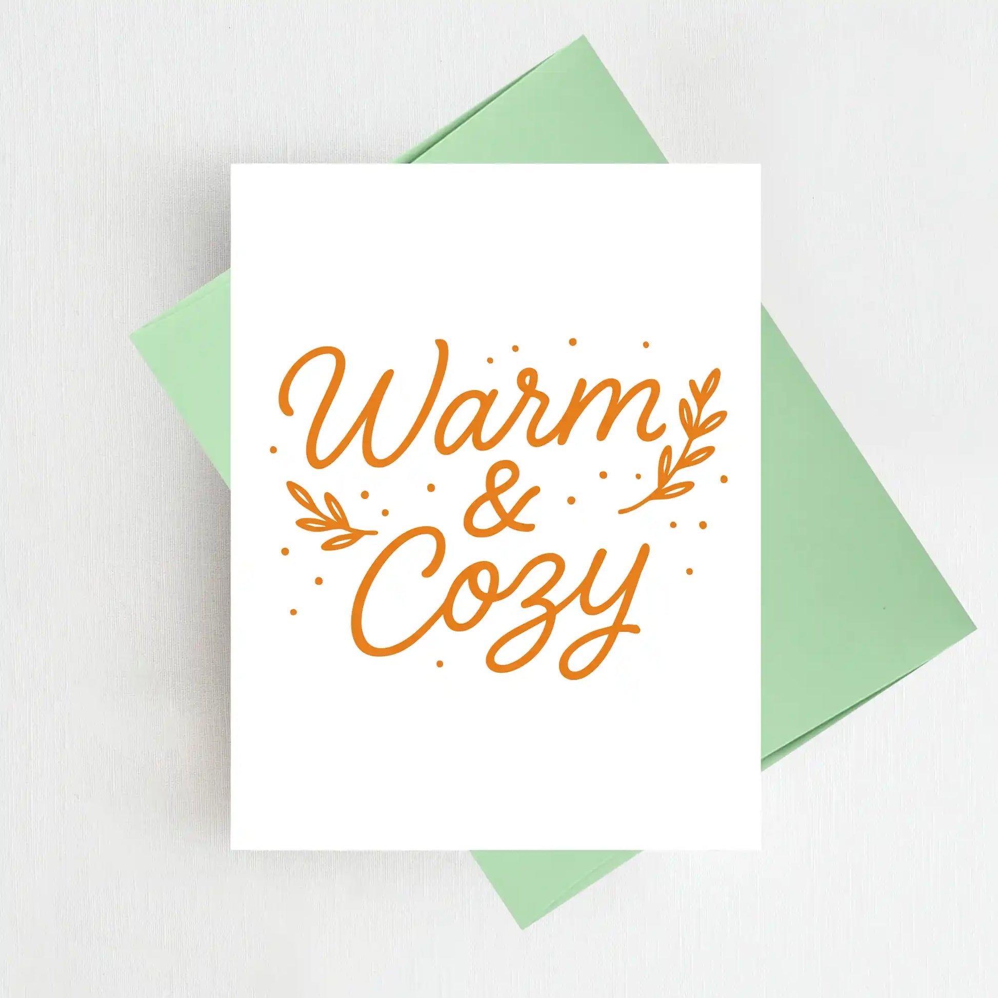 Send a little seasonal comfort with our Warm & Cozy card! Featuring cheerful orange script with delicate leaf accents, this design is perfect for fall birthdays, Thanksgiving notes, or just letting someone know you’re thinking of them during cozy season.
