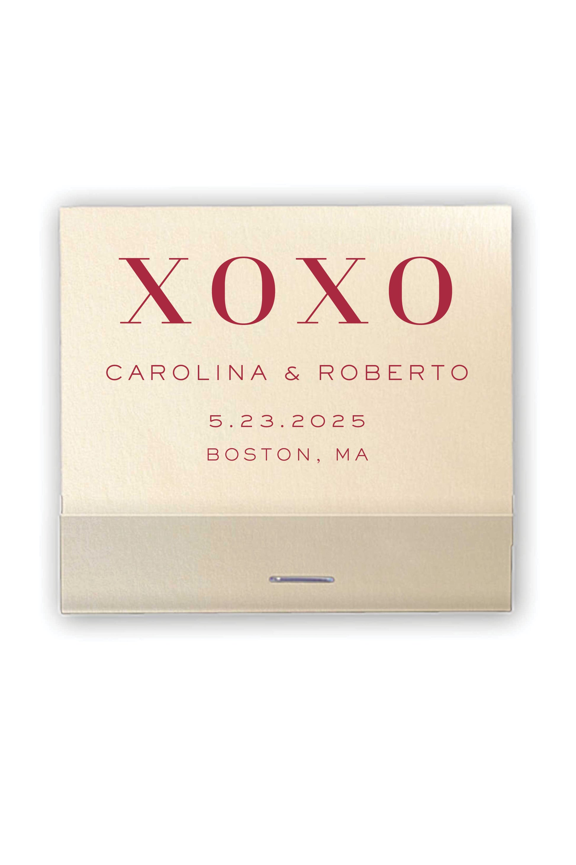 Make your wedding day spark with these amazing XOXO Matchbooks Custom Wedding Favors Matches! Make your wedding, anniversary, or rehearsal dinner sparkle with personalized matchbook favors, personalized to your wedding colors and featuring the bride and groom's names, wedding date and location.